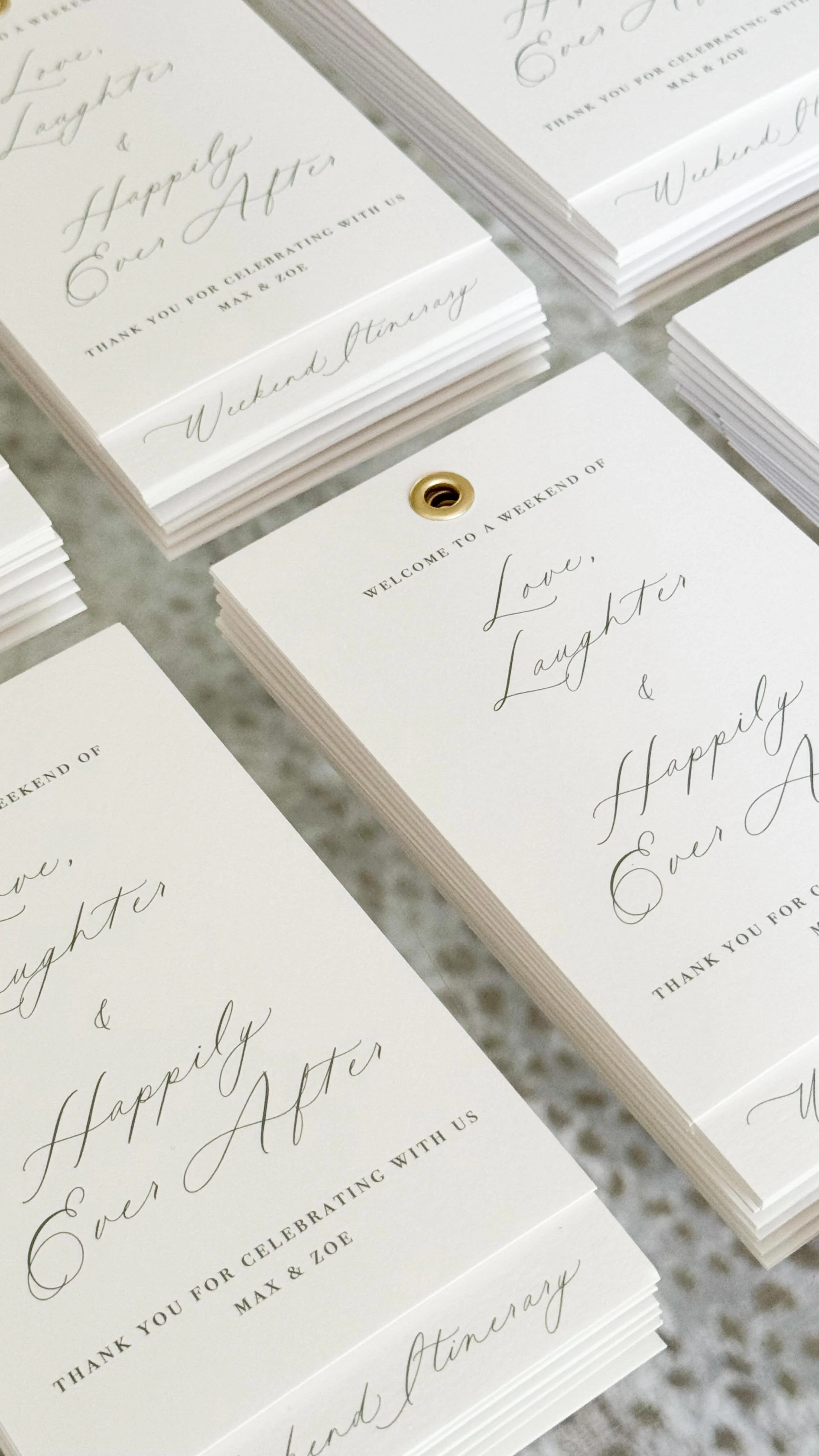 "I'm still so in love with our beautiful wedding stationery! The paper quality, printing, and designs were exceptional, but what truly impressed me was how perfectly the essence of our special day was captured. Our wedding theme, colors, and specific things we hold close to our hearts were woven together seamlessly, setting the tone for the designs. Sam's kindness, attention to detail, and genuine enthusiasm made the experience that much more special. Our wedding stationery is more than just a design– it's a memory of our special day and I will treasure them forever. Thank you for helping us share that with our loved ones. I highly recommend for any couple seeking beautiful, elegant wedding stationery!"